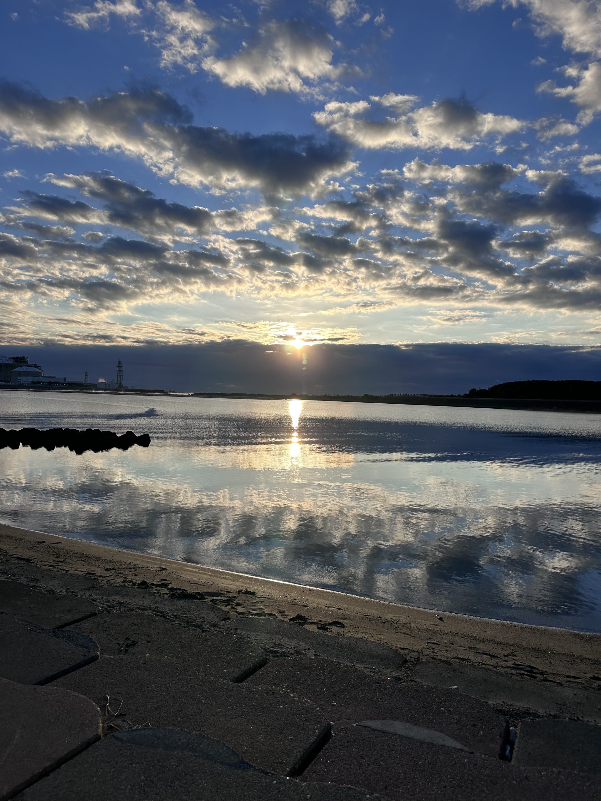 激寒の中 やっと太陽が出てきたら 雲が水面に照らされて 油絵のようで美しかった。